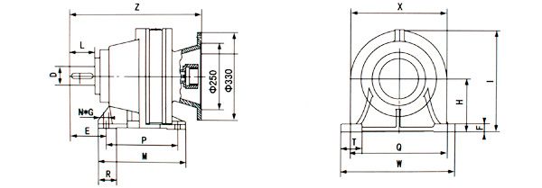 | 機(jī)型號(hào) | M | W | Z | Z1 | I | X | H | E | F | P | Q | V | G | B | C | D | L |